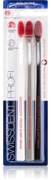Swissdent Profi Colours periuțe de dinți soft-mediu 3 buc